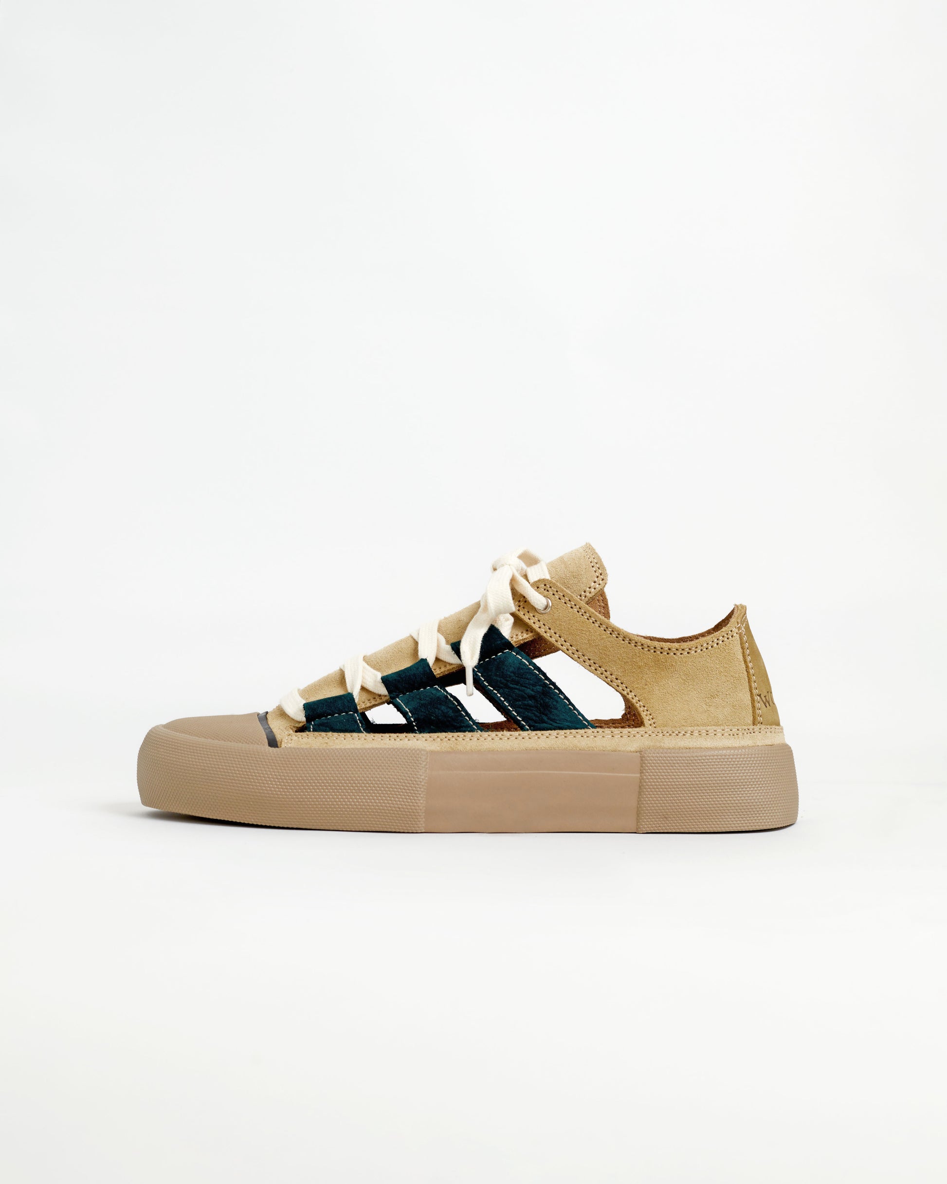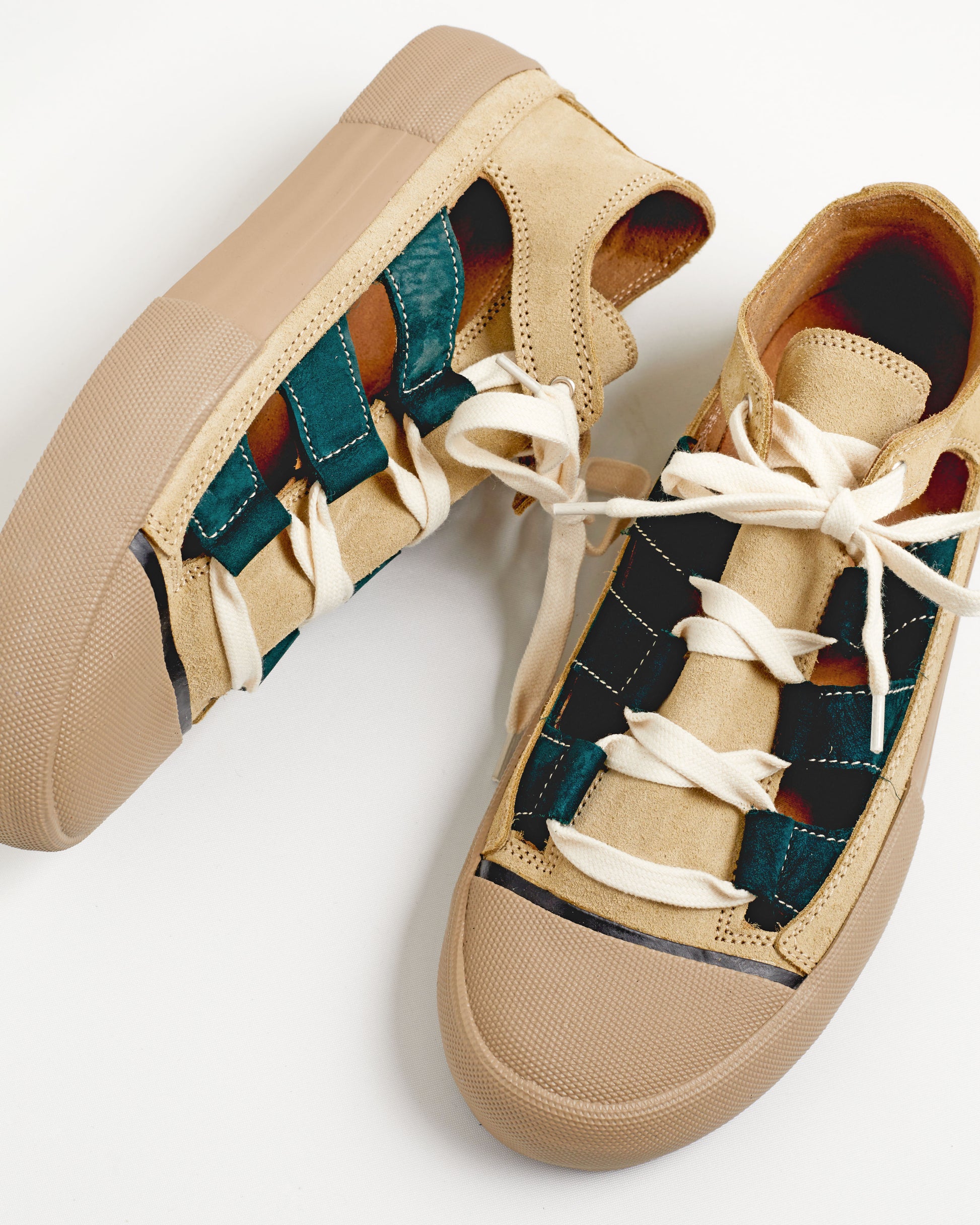 Olive green and ginger green suede.