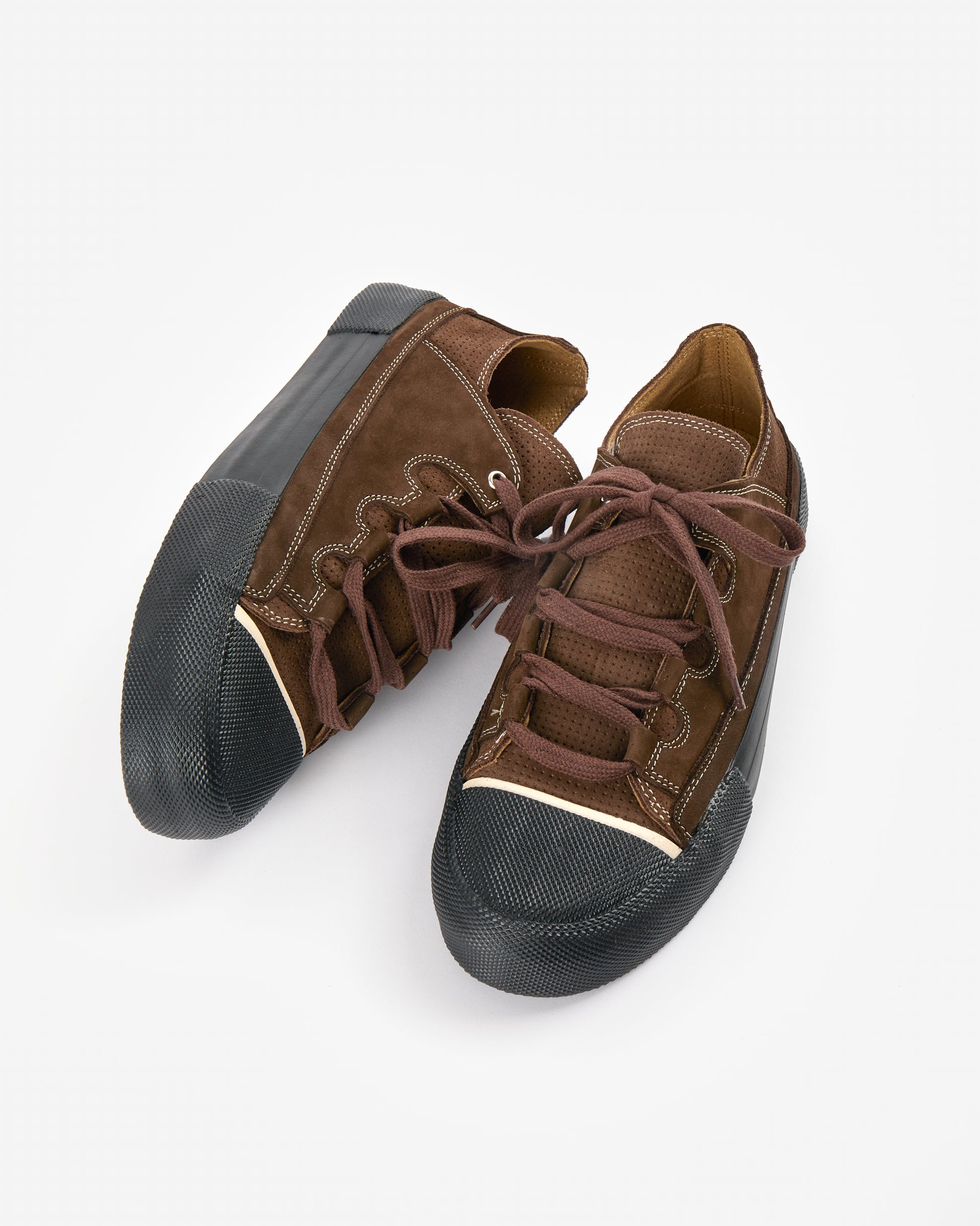 Chocolate brown suede.